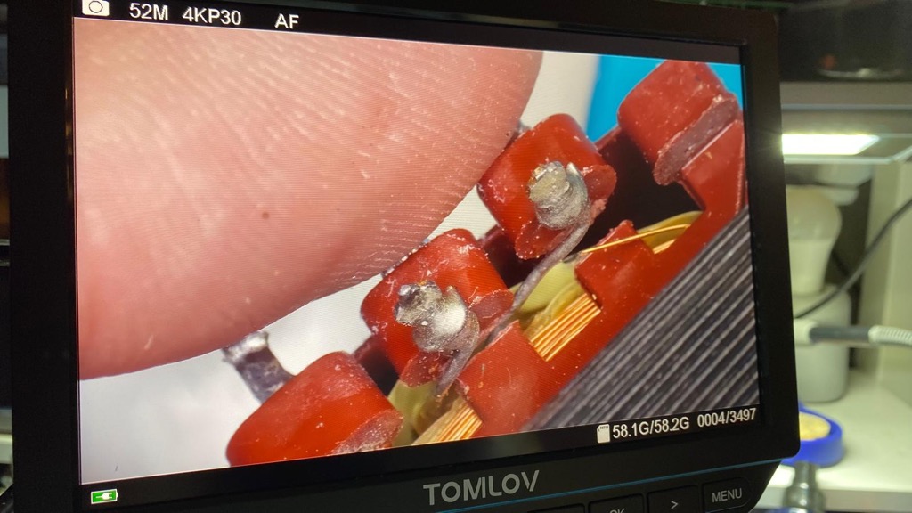 Next, I sprayed and brushed the PCB with isopropyl alcohol to remove the vinegar residue for the final clean and began testing all the traces where I had found damage from the battery corrosion under the microscope.