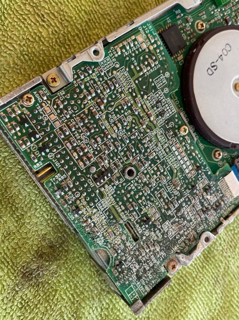 Now that I have power and I know that the critical components on the PCB, such as the ARM CPU and the custom chips, are functioning correctly, and it boots from ROM, I want it to boot from a hard disk. The 2.5" mechanical drive is dead, so I’m going to try to replace it with a CF card.