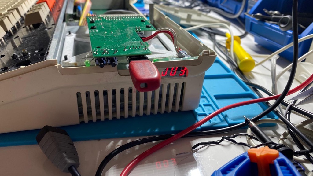With the PCB traces fixed and everything cleaned up and reassembled, it’s time to turn on the machine for the first time and see what happens. But first…