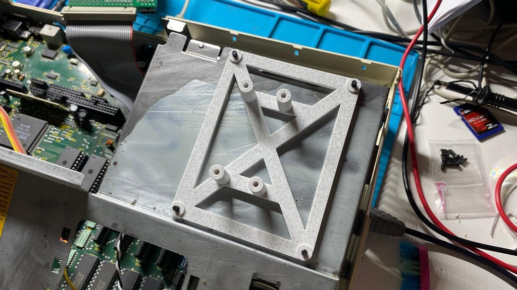 Next, I want to place the Gotek drive in the exact location as the original drive, making it accessible through the floppy drive hole of the A3020 case. I found the STL file of a 3D model (by drygol) to do just that, which I printed on my P1S 3D printer. It did the job perfectly.