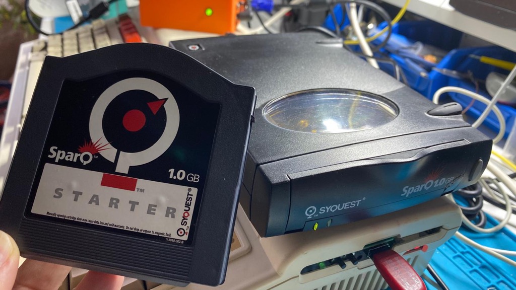 One last thing before we wrap up this long blog. This A3020 arrived with a SyQuest 1GB SparQ external drive and a 1GB disk loaded with software from the previous owner. I couldn’t complete this restoration without getting it to work.