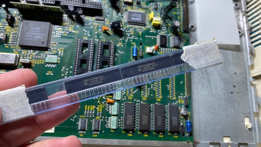 Luckily, the motherboard has sockets for another 2MB RAM chips. The bad news, though, is that it’s really hard to find the 28-pin ZIP DRAM chips it requires, unless you live in the UK, where the Acorn computers were abundant.
