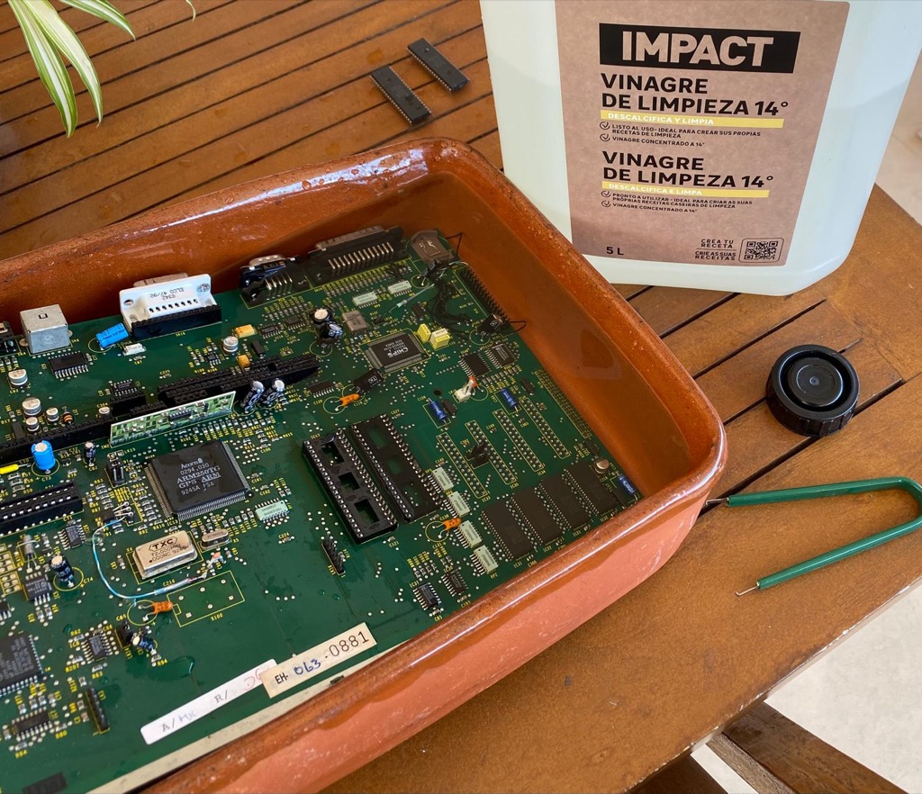 Finally, I washed the case and other parts and put everything in the sun for two days to brighten the plastics. There’s this theory that you actually don’t need chemicals to retrobright, so I’ll try that. My Acorn isn’t particularly yellowed anyway.
