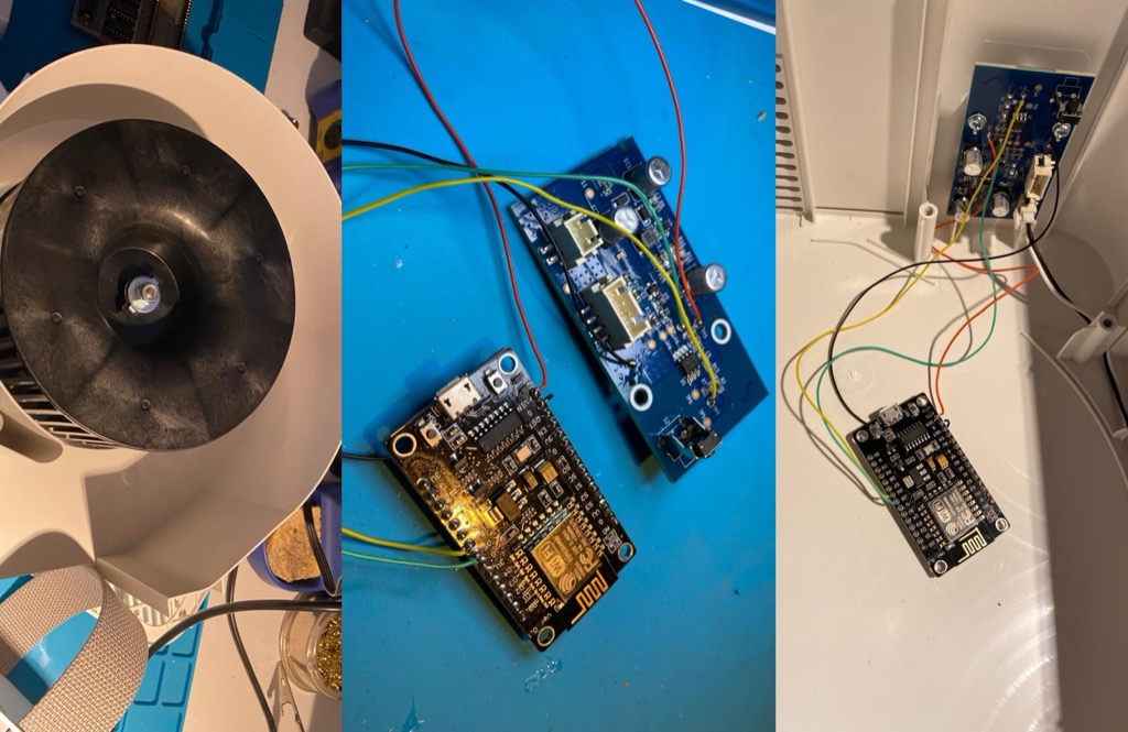 I like buttons and home automation, so the first thing I did was modify the UPPÅTVIND to use a NodeMCU V3 ESP8266 microcontroller running ESPHome to control its functions.