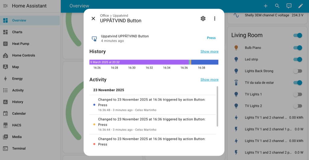 Home Assistant can now see the UPPÅTVIND entities and control it