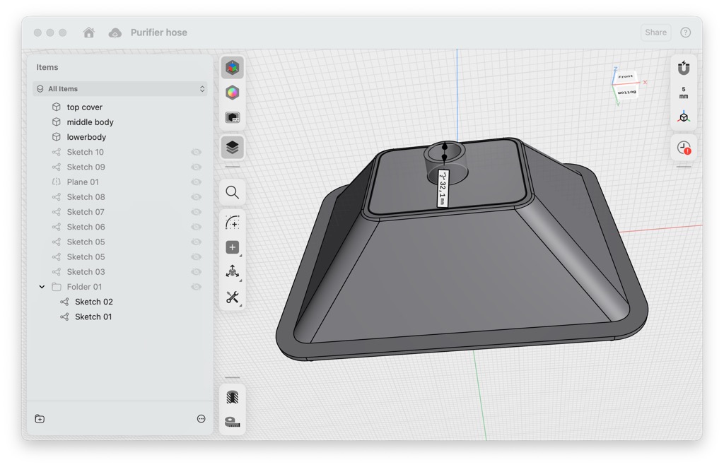 For that, I need to design a custom replacement cover for the UPPÅTVIND to which I can later connect the hose. Shapr3D to the rescue. You can find the 3MF/STL files here if you want to print them.